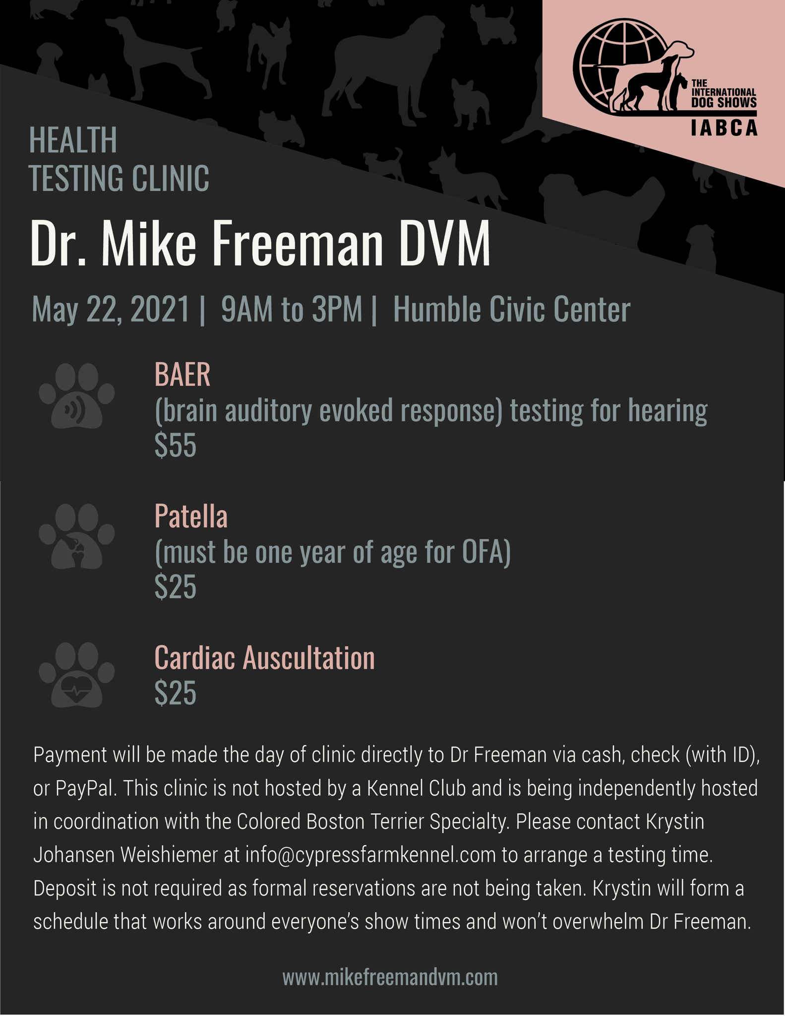 The 2021 Lone Star Spring Sieger will be held at Humble Civic Center & Arena Complex in Humble, TX. This show will be in an open-air arena on packed dirt. We will be setting up on Friday afternoon so if you plan on setting up early, please wait until we begin our setup first, keep setups away from our ring and front desk areas, and keep setup socially distanced from each other. The Show Roster will be updated periodically as entries come in and the Show Schedule will be available within a few days of the show closing. You can enter our show online or via fax or mail (for a printable show entry form, click here).